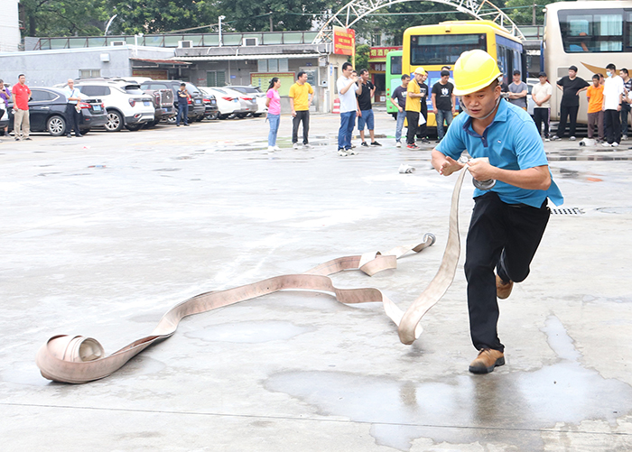 消防水帶接駁滅火比賽則要求指令發(fā)出后參賽隊(duì)員立即進(jìn)行消防帶展開(kāi)、接駁和跑到指定地點(diǎn),最后以規(guī)范動(dòng)作保持持槍噴水滅火姿勢(shì)。其中,水帶要全面展開(kāi),不能打結(jié),駁喉要緊扣。在該輪比賽,梁超全和溫韋津排第四位參賽,他們觀察了前三組的比賽過(guò)程,并結(jié)合平時(shí)工作中操作使用消防水帶的經(jīng)驗(yàn),迅速商定了比賽策略。開(kāi)賽后,溫韋津在起點(diǎn)將消防水帶展開(kāi),拋到位于20多米外的中點(diǎn)處,并迅速與另一段水帶駁喉接好,梁超全隨即接力把水帶另一端拉伸到終點(diǎn)的消防栓取水口,迅速地完成了全套比賽動(dòng)作。兩人動(dòng)作嫻熟,配合得當(dāng),快速精準(zhǔn)地完成了比賽,表現(xiàn)良好,得到了現(xiàn)場(chǎng)評(píng)委的贊揚(yáng)。根據(jù)比賽規(guī)則,以兩個(gè)項(xiàng)目的總用時(shí)評(píng)定名次,完成耗時(shí)少為優(yōu)。梁超全和溫韋津組成的參賽小組總體表現(xiàn)可圈可點(diǎn),獲得了三等獎(jiǎng)的好成績(jī),為公司取得了榮譽(yù)。