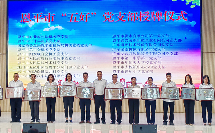 近日,我公司第一黨支部獲評我市“五好”黨支部。7月21日下午,恩平市“五好黨支部”頒獎活動在市黃岡實驗中學舉行,我公司第一黨支部書記梁均揚作代表上臺領(lǐng)獎。