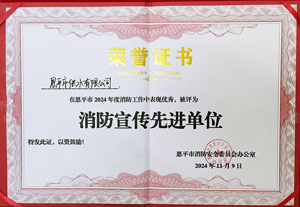 11月7日上午,在“119消防宣傳日”到來之際,恩平市舉行“全民消防 生命至上”消防安全宣傳活動?;顒訉?024年度全市“消防宣傳先進單位”和“消防宣傳先進個人”進行頒獎,我公司被評為全市消防宣傳先進單位。