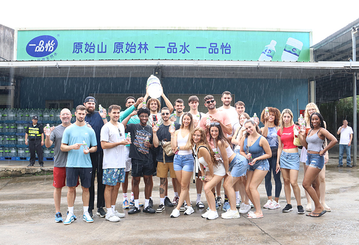 8月4日上午,參加2025中外職業(yè)男子籃球挑戰(zhàn)賽的西班牙職業(yè)男籃全明星隊與美國洛杉磯熱浪啦啦隊一行30余人,專程前往賽事戰(zhàn)略合作單位——恩平市七星坑山泉有限公司參觀交流。